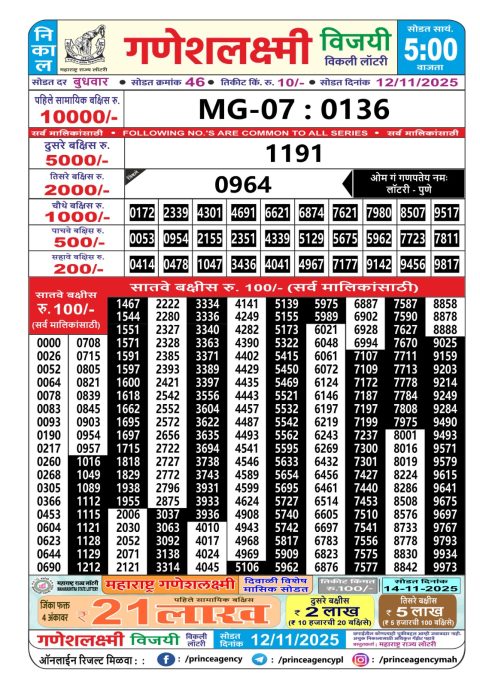 Maharashtra Ganeshlaxmi Weekly Lottery 5PM Result 12.11.2025