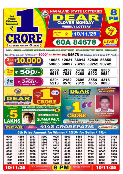 Nagaland State Dear Lottery 8PM Result 10.11.2025