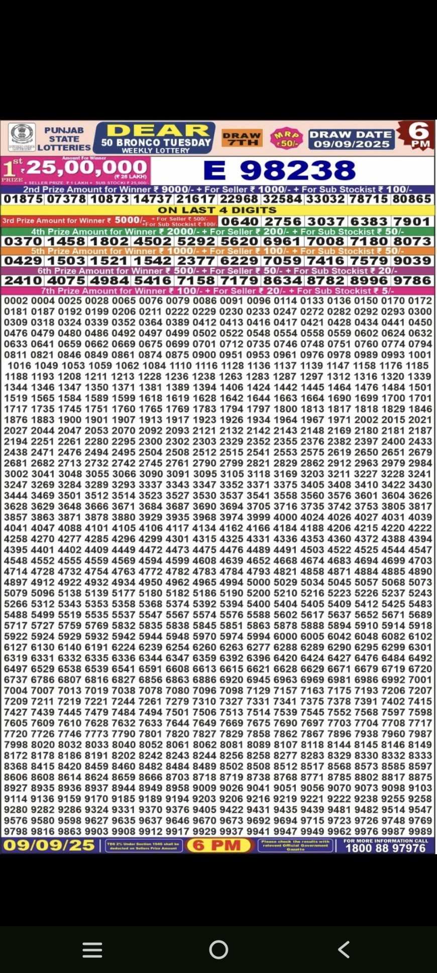 Punjab State Dear 50 Daily Lottery 6PM Result 23.08.2025 August 23, 2025 Leave a comment Related Results Maharashtra Gajlaxmi Weekly Lottery 4.45PM Result 19.07.2025 Punjab State Dear 10 Daily 6 Pm Result 23.05.2025 Labh Laxmi Daily Lottery 4PM Result 09.08.2025