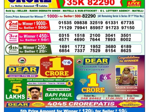 Rajshree 10 Daily Lottery 5.40 PM Result 11.07.2025 July 11, 2025 Leave a comment Related Results Nagaland State Dear Lottery 1PM Result 23.09.2025 Dear 10 Daily Lottery 7 Pm Result 2.06.2025 Rajshree 30 Weekly Lottery 8:30PM Result 19.07.2025