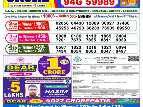 Sikkim State Dear Lottery 6PM Result 15.09.2025