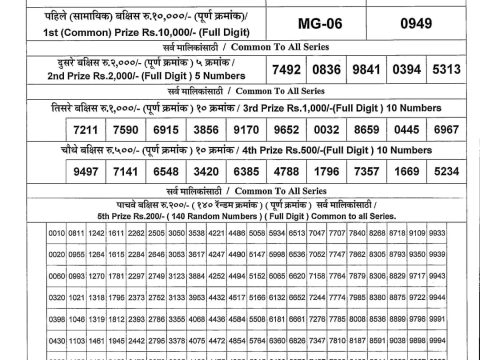 Rajshree 30 Weekly Lottery 8:30PM Result 14.09.2025 September 14, 2025 Leave a comment 14 September 2025 8.30pm – Goa state Rajshree 30 lotteries 8.30pm Result has been declared for 14/09/2025 . First prize rupees 15 lakh Winning Ticket J -39182 was unsold Today . Rest of the result is published here for your reference. Related Results Dear 10 Daily Lottery 1.30 PM Result 14.07.2025 Dear 10 Daily Lottery 1.30 PM Result 07.07.2025 Rajshree 30 Daily Lottery 8.30 PM Result 04.05.2025