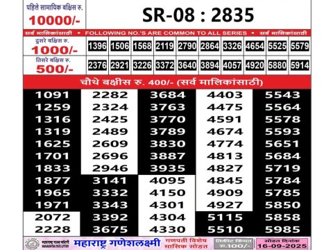 Maharashtra Sahyadri Weekly Lottery 4.30PM Result 12.09.2025