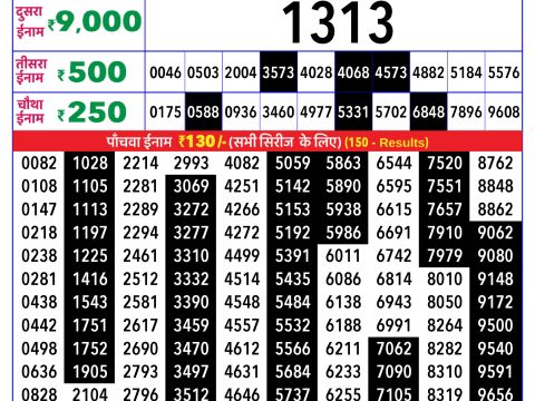 Rajshree Daily Lottery 1 PM Result 17.07.2025 July 17, 2025 Leave a comment Related Results Maharashtra Diwali Bumper Result 01.11.2025 Live now Rajshree 10 Daily Lottery 5.40 Pm Result 15.06.2025 Maharashtra Vaibhav Laxmi Weekly Lottery 4.15 PM Result 04.07.2025
