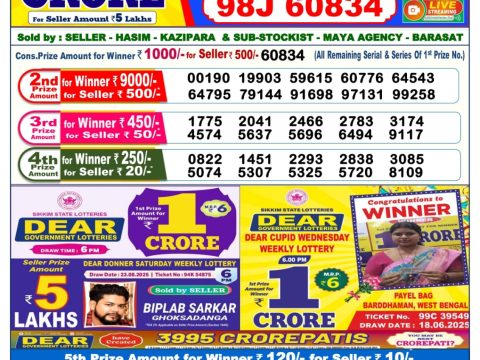 Rajshree Daily Lottery 1:00 Pm Result 11.05.2025 May 11, 2025 Leave a comment Related Results Maharashtra Ganeshlaxmi Weekly Lottery 5 Pm Result 25.06.2025 Sikkim State Dear Lottery 6PM Result 04.09.2025 Punjab Summer Special Lottery 8 PM Result 21.06.2025