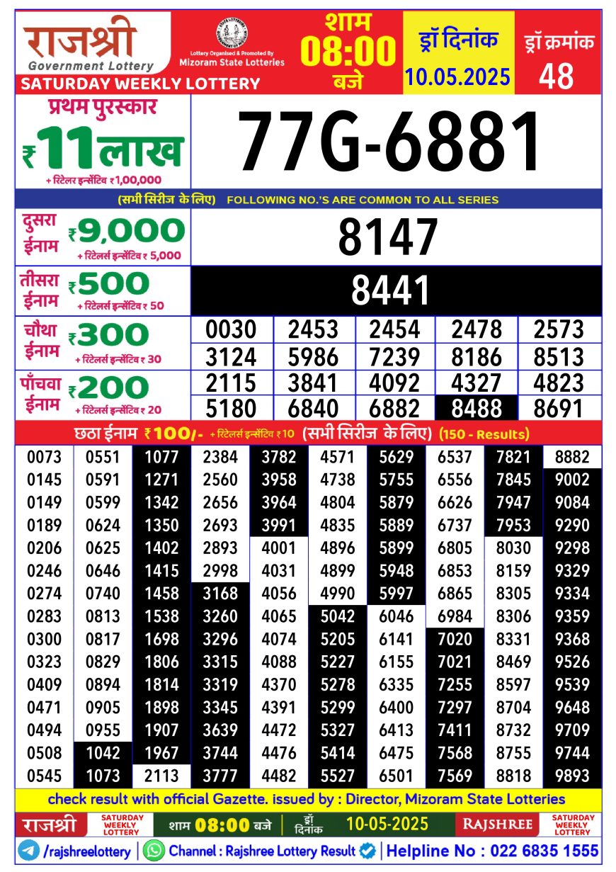 Rajshree Daily Lottery 8 PM Result 10.05.2025