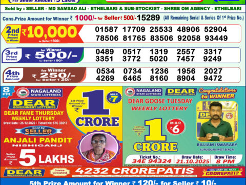 Dear 50 Daily Lottery 5 Pm Result 15.06.2025