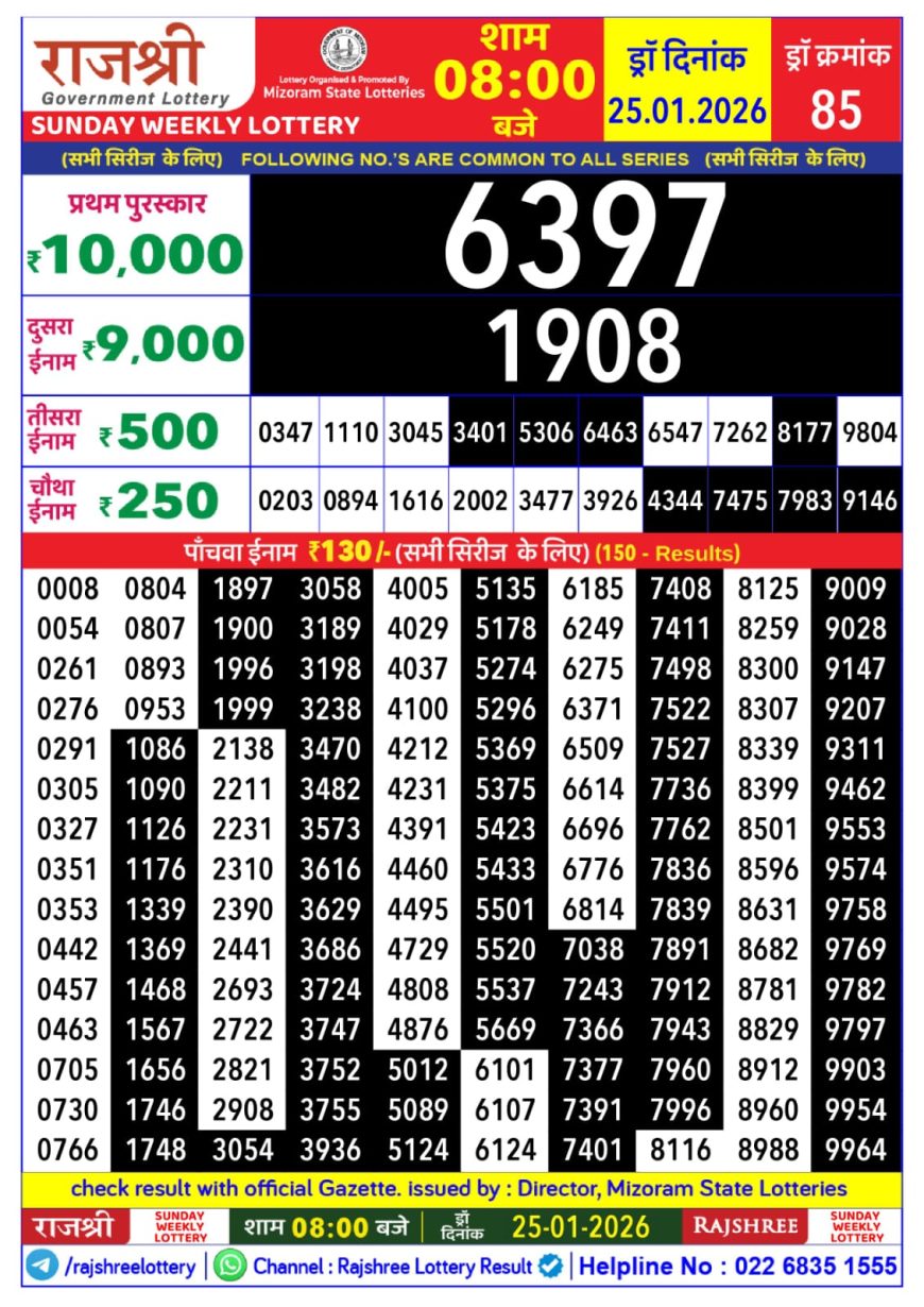 Rajshree Daily Lottery 8PM Result 25.01.2026