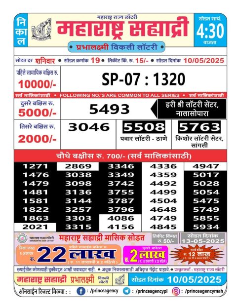 Maharashtra Sahyadri Weekly Lottery 4.30 PM Result 05.07.2025