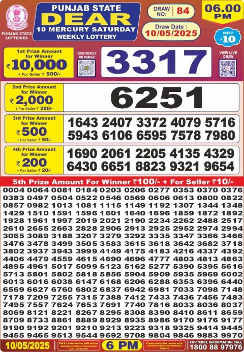 Punjab State Dear 10 Daily 6 Pm Result 31.05.2025