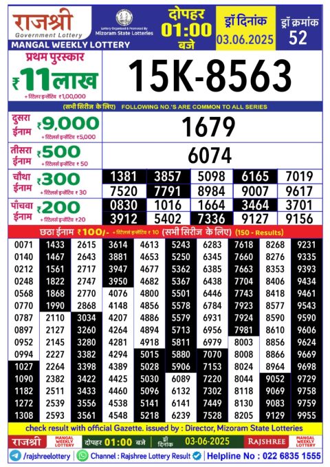 Rajshree Daily Lottery 4 PM Result 15.07.2025