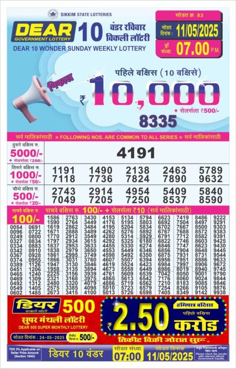 Dear 10 Daily Lottery 7 Pm Result 25.06.2025