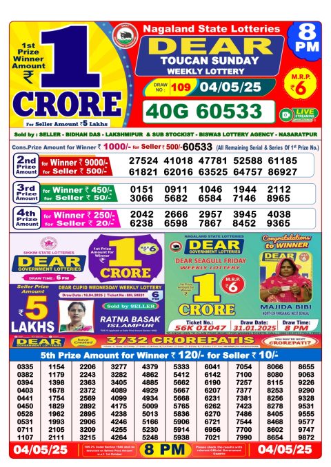 Dear Daily Lottery 8 PM Result 01.07.2025