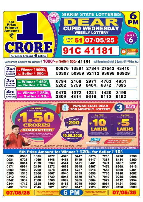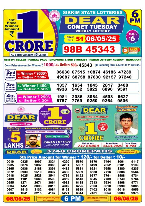 Dear Daily Lottery 6 PM Result 02.07.2025